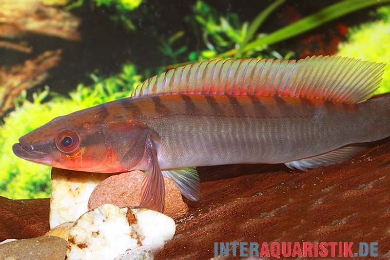 | Synonyme: | Grauer Hechtcichlide, Red-finned Pike Cichlid |