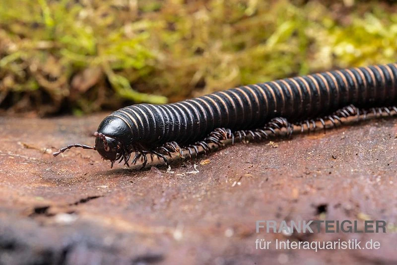Pink gestreifte Tausendfüßer sind einfach zu füttern. Die Exoten nehmen Holz, Laubstreu, Obst, Gemüse und Pilze an.