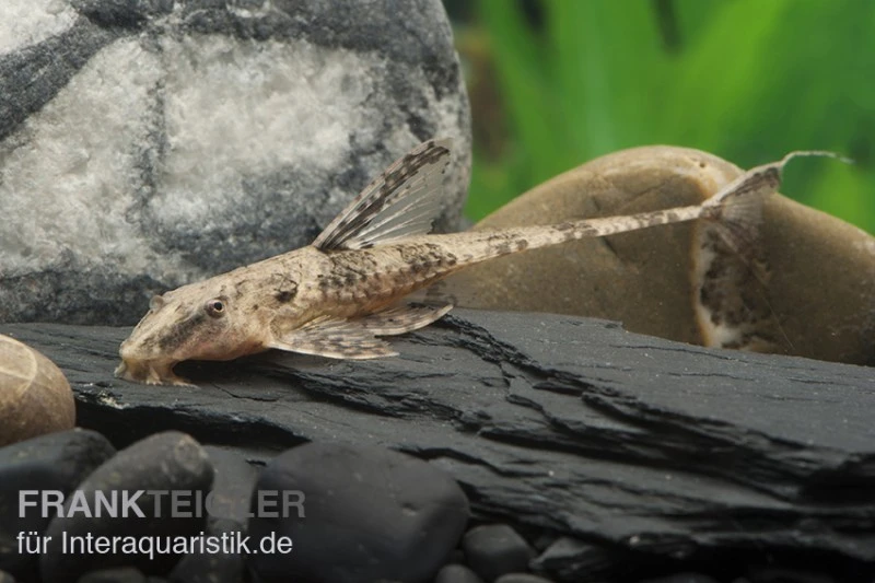 Rineloricaria lanceolata – Schokoladenbrauner Hexenwelse benötigen leicht abgedunkelte, dicht bepflanzte Becken, die mit langgestreckten Wurzeln und Höhlen aus Steinen ausgestattet sind. Die Backenbart tragenden Männchen entwickeln sich zu kleinen Territorialherrschern, indem sie kleine Reviere besetzen, in denen sie dann aber auch keine Konkurrenz dulden.